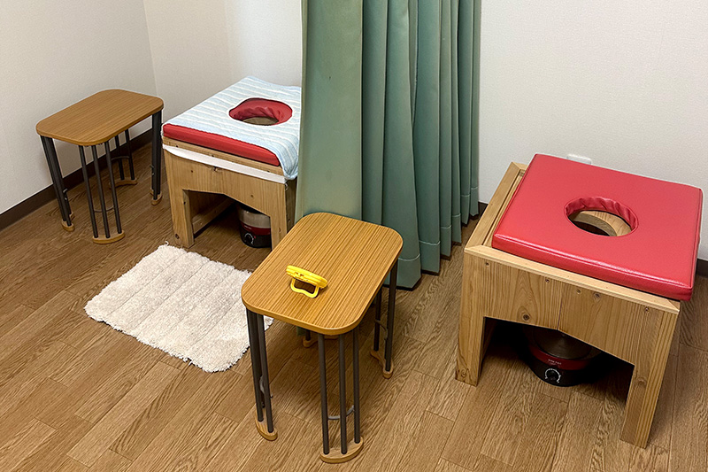 当店では、よもぎ蒸し専用のマントや座器を1回ごとに洗浄・消毒し、常に清潔な状態を保っています。